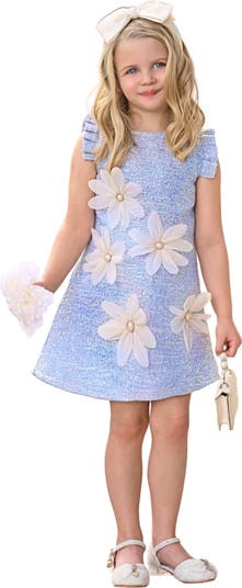 Let her shine in this dreamy sparkle blue shift dress, adorned with delicate daisy appliqués for a whimsical touch. Perfect for parties, photoshoots, and special celebrations.