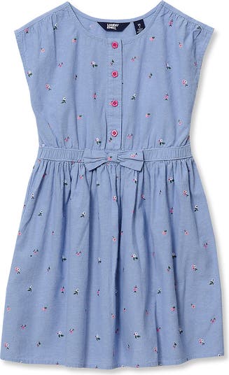 Breezy denim, made to play. Our Girls Short Sleeve Lightweight Denim Dress combines comfort with style. The 100% cotton construction keeps things breezy while functional buttons, faux waist tie and elastic waistband create the perfect fit. With its slouchy bodice and A-line skirt, she'll love this summer essential.