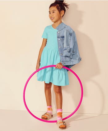 Girls Short Sleeve Slub Jersey Tiered Dress