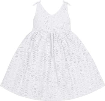 Eyelet feels fresh and fun in our bestselling bow shoulder summer dress. Features adorable bows at the shoulders, v-neck silhouette, a full lining, and a side zipper for easy dressing. Comfortable to play and move in, but still has a beautiful and flattering silhouette that could be dressed up for a special event.