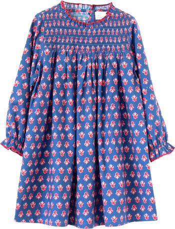 Girls' Smocked Long Sleeves Dress | Red and Navy