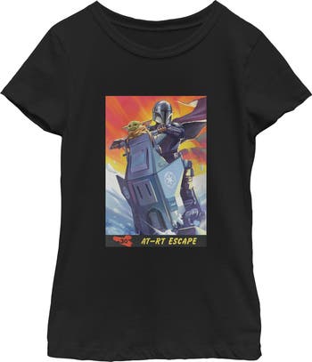 Girl's Star Wars The Mandalorian and Grogu AT RT Escape Comic Art Graphic T-Shirt