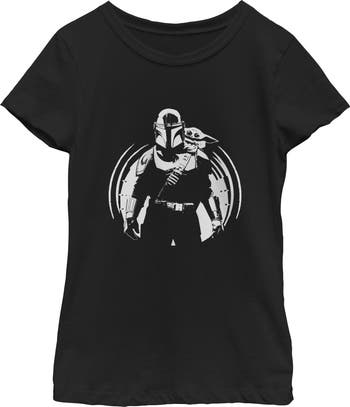 - Experience the thrill of the galaxy with this new girls' t-shirt that is perfect for fans who know that "this is the way" to stay stylish! Featuring black-and-white artwork with Grogu nestled on The Mandalorian's back printed across the front.