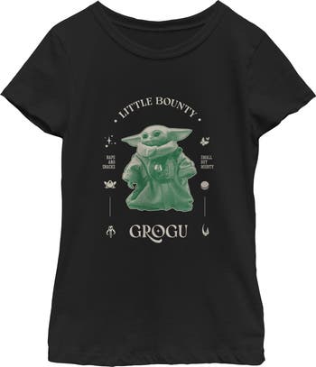 - Protect the galaxy with this girls' t-shirt that will look perfect alongside the New Republic! Featuring Grogu and the text "Little Bounty Grogu" printed across the front.