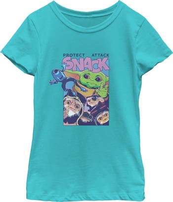 Girl's Star Wars The Mandalorian and Grogu Protect Attack Snack Collage Graphic T-Shirt