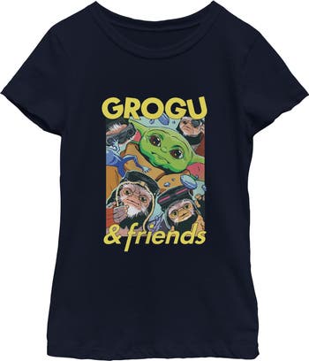 - Protect the galaxy with this girls' t-shirt that will look perfect alongside the New Republic! Featuring a fun graphic of Grogu with a group of Anzellan Droidsmith and frogs jumping around them.