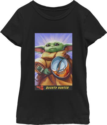 Girl's Star Wars The Mandalorian and Grogu The Child Bounty Hunter Comic Art Graphic T-Shirt