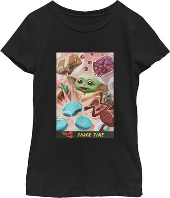 Girl's Star Wars The Mandalorian and Grogu The Child Snack Time Comic Art Graphic T-Shirt