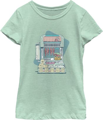 Experience cuteness like never before in a galaxy far, far away! Get ready for an epic journey by packing your favorite snacks and snagging this officially licensed The Mandalorian and Grogu apparel! This charming Girls' The Child Street Stall Graphic T-Shirt features Grogu at a retro space-food stall, looking utterly adorable as he enjoys his newest treat—a fish. Don't let your style go unnoticed! Grab this awesome tee and let your craving for adventure take off!