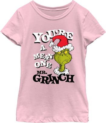 The Grinch Girl's The Grinch Christmas Grinch You're a Mean One Portrait  Graphic T-Shirt, Main, color, Light Pink
