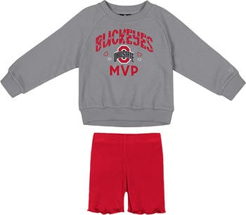 Get your little Buckeye ready for game day with this Ohio State Buckeyes Beta Fleece Sweatshirt and Shorts Set from Colosseum. The soft and cozy fleece fabric will keep them warm and comfortable, whether they're cheering on the Buckeyes from the sidelines or relaxing at home. This set makes a great gift for any little Buckeye fan and is sure to become a favorite in their game day wardrobe.
