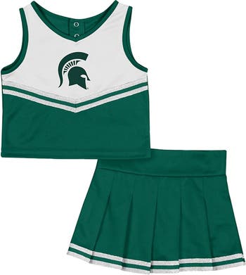 Get your little one ready to cheer on the Michigan State Spartans with this adorable Colosseum Time For Recess Cheer Top & Skirt Set. This adorable two-piece set features a sleeveless top with a charming V-neck and a coordinating skirt adorned with sewn-on woven stripes and a touch of glitter for extra sparkle. The skirt includes built-in shorts for added comfort and convenience, making it perfect for active little Michigan State Spartans fans.