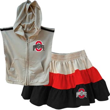 This Wes & Willy Ohio State Buckeyes Tri-Blend Sleeveless Full-Zip Hoodie & Tiered Skirt Set is the perfect game day outfit for your little Buckeye. This set features a lightweight sleeveless hoodie with a French terry lining, perfect for layering on cooler days, and a stylish tiered skirt with attached briefs for a playful touch. Whether they're cheering from the stands or enjoying a day of play, your little Ohio State Buckeyes fan will be ready to show their team spirit in comfort and style.