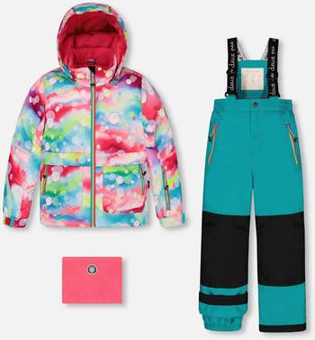 Girl's Two Piece Snowsuit Printed Bubbles And Turquoise