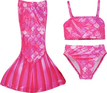 Girls UPF 50+ 3 Piece Mermaid Shell Swimsuit with Shimmer Effect