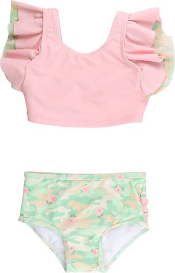 Dive into fun with this vibrant tankini designed especially for girls who love a splash of style. Showcasing a delightful design, this girls swimsuit is a trendy choice for beach days or poolside play. Not only does it feature adorable ruffles for that extra flair, but it also includes signature rear ruffles that add a unique touch to this two-piece ruffle swimsuit. Crafted for comfort and durability, the swimsuit resists pilling and snagging, ensuring it stays looking new throughout the season. Plus, it offers UPF 50+ sun protection, making it a smart choice for outdoor activities. The fully lined design enhances comfort, while the 4-way stretch fabric allows for unrestricted movement, perfect for those active days in the water. Whether it's for a summer vacation or a swimming lesson, this knit swimsuit is an excellent addition to your girl's wardrobe. It combines functionality with cute, eye-catching details like the monogrammed option, making it not just a swimsuit but a personal statement piece.