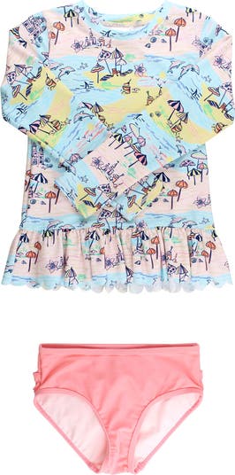 Style your favorite little girl in this Scallop Long Sleeve Rash Guard Bikini for beach day. This bottom is fully lined while the top is unlined. It's made with UPF 50+ sun protected fabric for all day comfort and fun.