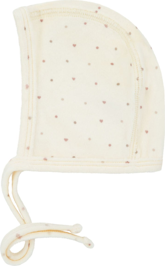 Dot pattern velour wrap bonnet that is super soft and cozy.
