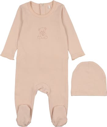 The Vintage Bear Footie in Pink is a must-have with its adorable vintage bear graphic and beautiful fit that hugs your little one comfortably. Complete with a matching hat, this playful set is perfect for cozy days filled with charm and fun!