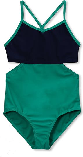They'll love the airy lightness of this colorful seersucker swimsuit, while you'll love the classic look. The high neck and UPF 50 fabric offer sun protection, and the wrap front features a sweet side bow that stays in place while they play all day.
