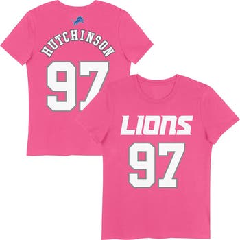 Let your young fan show their support for their favorite player with this Detroit Lions Aidan Hutchinson Player Name & Number T-Shirt. The screen print team and player details on the front and back showcase your young fan's favorite player. Boasting a rib-knit, tagless collar with interior taping for a more comfortable feel, this t-shirt will have your kiddo feeling like they're ready to hit the field.