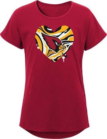Help your young fan let everyone know which NFL team has their heart with this Arizona Cardinals T-shirt. With soft fabric and dolman sleeves, this top is both comfortably flowy and flattering in style. The vibrant dripping heart around the team logo illustrates they're a proud Arizona Cardinals supporter.