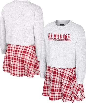 Help your favorite young fan show her Alabama Crimson Tide spirit with this Marceline Plaid Skirt and Top Set by Colosseum. The solid team color top and flared plaid skirt with a handkerchief hem create a stylish look that's perfect for game day or any day. Plus, the embroidered team graphics make it an adorable way for her to show her love for the Alabama Crimson Tide.