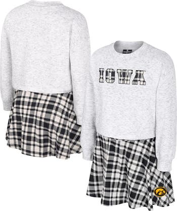 Help your favorite young fan show her Iowa Hawkeyes spirit with this Marceline Plaid Skirt and Top Set by Colosseum. The solid team color top and flared plaid skirt with a handkerchief hem create a stylish look that's perfect for game day or any day. Plus, the embroidered team graphics make it an adorable way for her to show her love for the Iowa Hawkeyes.