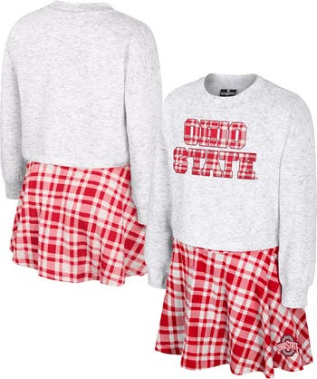 Help your favorite young fan show her Ohio State Buckeyes spirit with this Marceline Plaid Skirt and Top Set by Colosseum. The solid team color top and flared plaid skirt with a handkerchief hem create a stylish look that's perfect for game day or any day. Plus, the embroidered team graphics make it an adorable way for her to show her love for the Ohio State Buckeyes.
