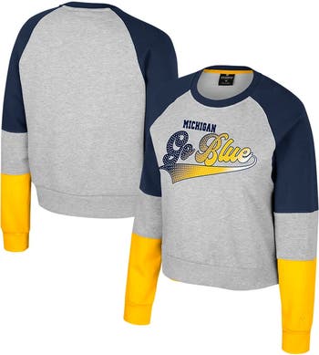 Keep your little Michigan Wolverines fan stylish with this Katinka Rhinestone Pullover Sweatshirt from Colosseum. This sweatshirt features a fleece lining for added warmth and a soft feel, making it perfect for cheering on the Michigan Wolverines during cooler temperatures. The cropped hem hits at the waist for a flattering fit, while the screen print graphics with rhinestone details add a touch of sparkle and shine.