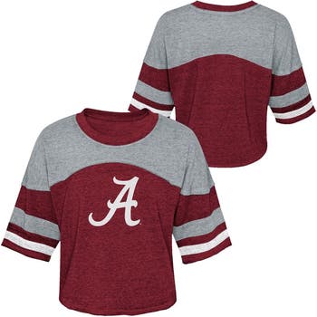 Give your young Alabama Crimson Tide fan a spirited means of showcasing their ever-growing love for their favorites by snagging this Sunday Funday Jersey T-shirt. It features an instantly recognizable Alabama Crimson Tide graphic printed on the torso along with two-toned team colors on stylish burnout fabric for a look that's equally cute and fun. The sleeve stripes finish off the look of this bold top, while the rounded hem ensures it rests comfortably where it matters.
