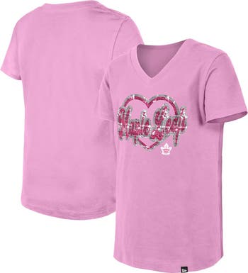 Girl's Youth New Era Pink Toronto Maple Leafs Flip Sequin V-Neck T-Shirt