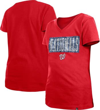 Girls Youth New Era Red Washington Nationals Flip Sequin Team V-Neck T-Shirt