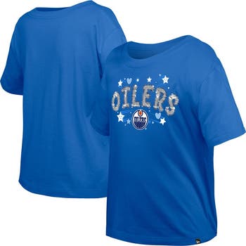 Girl's Youth New Era Royal Edmonton Oilers Flip Sequin T-Shirt