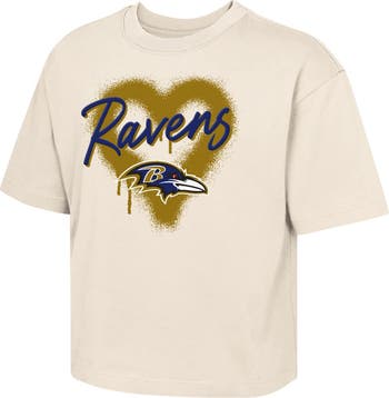 Girl's Youth Outerstuff Cream Baltimore Ravens Spray Heart Boxy T-Shirt