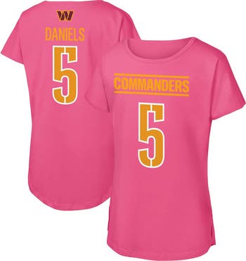 Girls Youth Outerstuff Jayden Daniels Pink Washington Commanders Player Name & Number T-Shirt