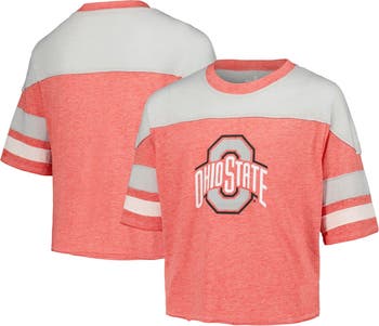 Girls Youth Scarlet Ohio State Buckeyes Sunday Friday Sleeve Stripe Jersey T-Shirt