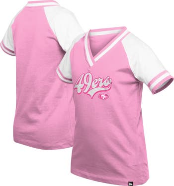Girl's Youth New Era Pink San Francisco 49ers Mommy & Me Multiplier Raglan V-Neck T-Shirt