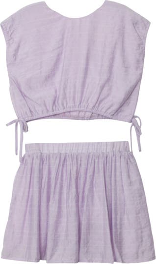 Add a splash of color to her wardrobe with the Girlypop Purple Two-Piece Set. This light and airy two-piece set features a cap-sleeve top with playful side ties and a matching skirt. Fabric Care & Content Machine Wash Cold | Line Dry | Do Not Bleach 68% Viscose 22% Nylon 10% Polyester Denier lining