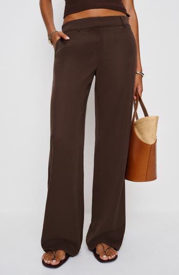 Slimming straight legs add classic polish to these work-to-play pants made with a low rise.