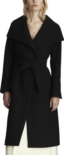 This sequin version of our Gisele wrap coat was inspired by the subtle glamour of the night sky. Tiny sparkles scattered across soft, inky black wool pair elegantly with the large wing collar and optional tie belt -- perfect for black tie parties and casual dinners alike.