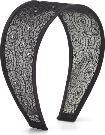 Intricate lace brings Victorian-inspired romance to this wide headband glittering with hand-set crystals.