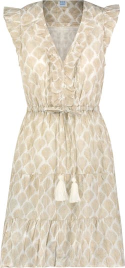 Introducing the Giselle, a sophisticated summer essential that captures understated luxury. This refined piece features graceful flutter sleeves and intricate ruffle detailing that frame a flattering deep V neckline. The drawstring waist, finished with elegant tassel embellishments, allows for a customized silhouette. Constructed from premium 100% cotton voile with full lining, the 35" length provides a polished, flattering drape that transitions seamlessly from day to evening.