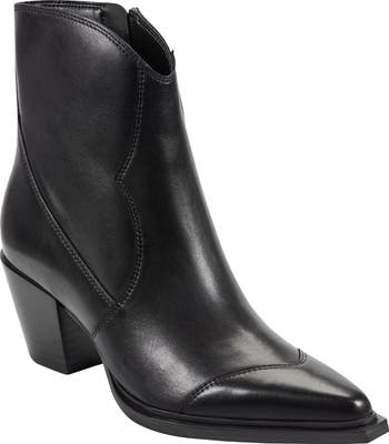 Raised seams bring a Western-inspired aesthetic to a cap-toe bootie lifted by a stacked heel and secured with a side zipper for easy entry.
