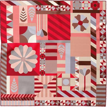 This pure silk bandana scarf features a striking geometric print—graphic, modern and bold in harmonious shades. Wear it to break up soft layers or sharpen a simple look. Small scarf, big impact.