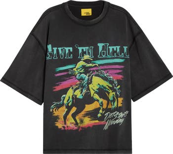 Neon rodeo graphics bring high-octane cowboy energy to this oversized T-shirt cut from soft, breathable cotton that's faded and subtly distressed for instant old-favorite comfort.