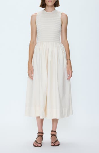 Take a stroll through the market on a sunny day before grabbing lunch with friends in this stretch-kissed cotton dress designed with a smocked bodice and breezy midi skirt.