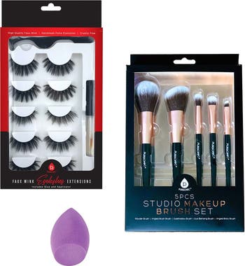 Glam Essentials Bundle 3D Faux Mink Lashes, Makeup Sponge & Brush Set