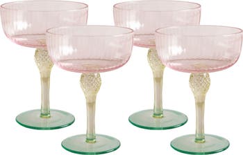 Our GLASS Aquarelle Coupe Set of 4 (Multi) is an elegant classic that's ideal for champagne and sparkling wines. Featuring chic fluting and gem-like details, the 8oz piece combines shimmering pink, yellow and green tones. Mix & match fun! Find the perfect glass for your favorite cocktail or beverage. Mix and match colors to create a unique serving experience (and boost your party's awesomeness). Sold as sets of four. Grab a set and prepare for a colorful party! These beauties are sure to turn heads and make everyone say "Cheers!"