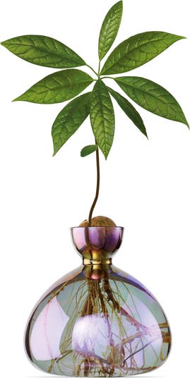 Created with the desire to help people grow trees from seed at home, this avocado vase encourages planting, patience and a closer relationship with nature. The minimalist design meets functionality with a shape that lets you observe the avocado seed as it matures. The opening keeps the seed dry as it sprouts, while the base magnifies the roots as they grow, creating a perfect focal point to witness the plant as it develops.